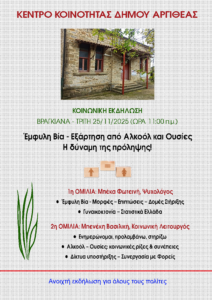Με ιδιαίτερη επιτυχία πραγματοποιήθηκε σήμερα Τρίτη 25 Νοεμβρίου 2025, το πρωί, στο Κέντρο Κοινότητας του Δήμου Αργιθέας, (πρώην Δημαρχείο...