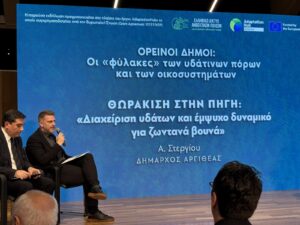 - Ο Δήμαρχος Αργιθέας και Αντιπρόεδρος του Δικτύου Ανδρέας Στεργίου παρουσίασε το θέμα: «Ο Ρόλος των Ορεινών Δήμων στην Προστασία Υδάτινων Πόρων και Οικοσυστημάτων».